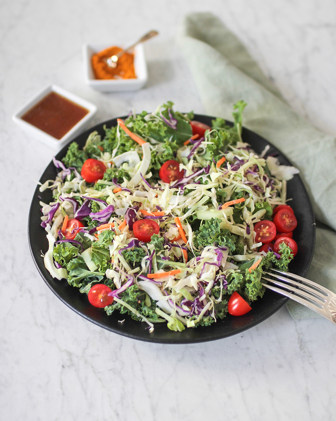 Add all of the ingredients into a large mixing bowl. Pour the vinaigrette over the top and mix well.
