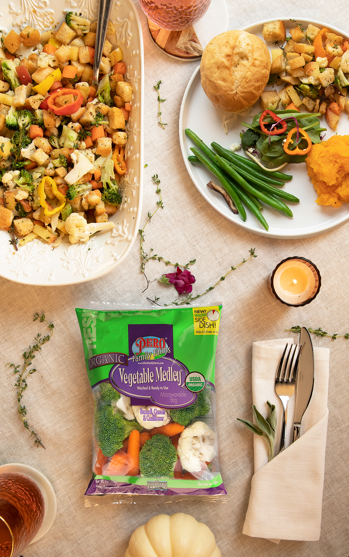 Your stuffing just got an upgrade! Made with Pero Family Farms Vegetable Medley, juicy apples, and a flavorful mix of toasted bread and herbs, this Savory Vegetable Medley Stuffing brings warmth and comfort to every holiday table this year.